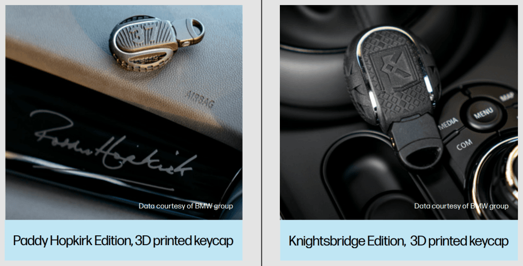 Example: Manufactured with HP PA-12 for Mini and Other BMW brands, these customized keyfobs celebrate limited edition vehicles