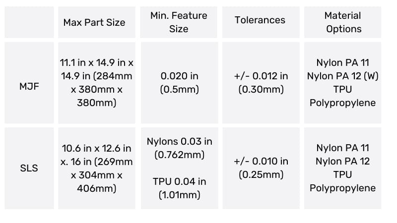 MJF vs. SLS Comparative Data